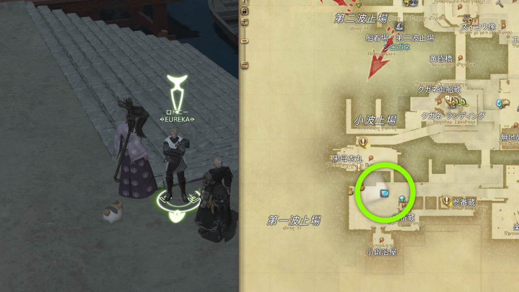 クガネ(X:8.6 Y:14.2)付近にいるNPC「ロドニー」に話しかけ、「エウレカ:アネモス編」に突入しましょう。