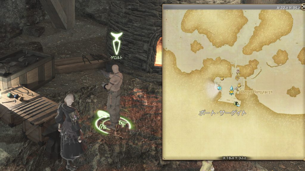 クリスタルが集まったら、エウレカ内拠点の(X:18.0 Y:32.2) 付近にいるNPC「ゲロルト」に話しかけます。