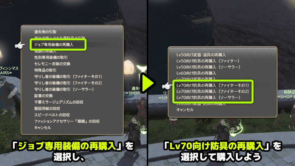 捨ててしまって所持していない場合は、装備1カ所につき1000ギルで遺失物管理人から購入できます。