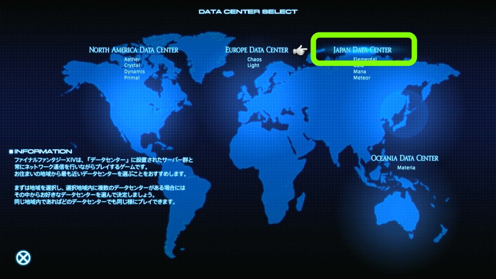 ホームワールドにしたいワールドが入っているデータセンターを選びましょう。