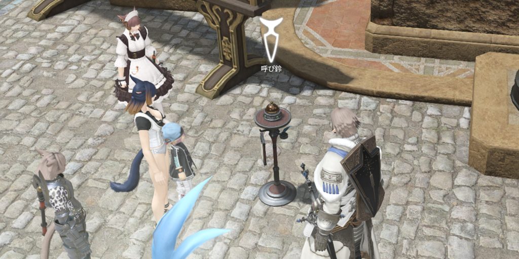 リテイナー機能は「呼び鈴」から利用できますが、ワールド間テレポの移動先ではリテイナーの呼び出しや解雇ができません