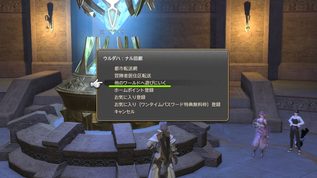 ワールド間テレポはウルダハ、グリダニア、リムサ・ロミンサのエーテライトから行いましょう。